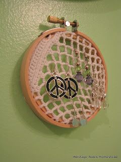 Cameo is now old enough that she has a variety of earrings and doesn’t really have a place to keep them. I came up with a neat way to display and hang them when she isn’t wearing them.