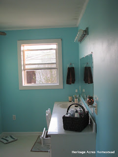 Yesterday, Cameo and I painted the bathroom. It was a dull tan color and in dire need of fresh paint.