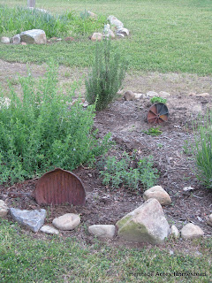 I love putting pretty things in my flower beds. I have little faux toadstools and pretty rocks. My Cameo brought these un-salvage-able cast iron pans and said, “Mom, what about these?” That child knows me SO well… I said, “YES! I love that!” 🙂