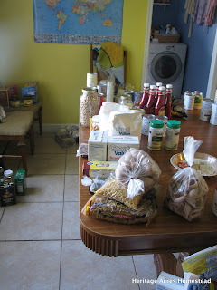 So, the children and I took EVERYTHING out of our pantry cabinet. We are going to organize it, and plan meals with it and see just how much we can stretch every scrap.