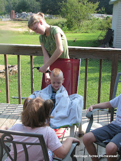 Big Sister giving Little Brother a ‘mohawk’. He was so excited. ๐
