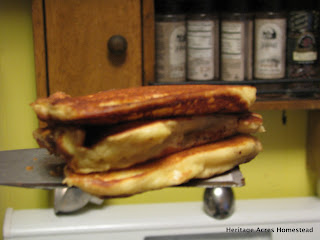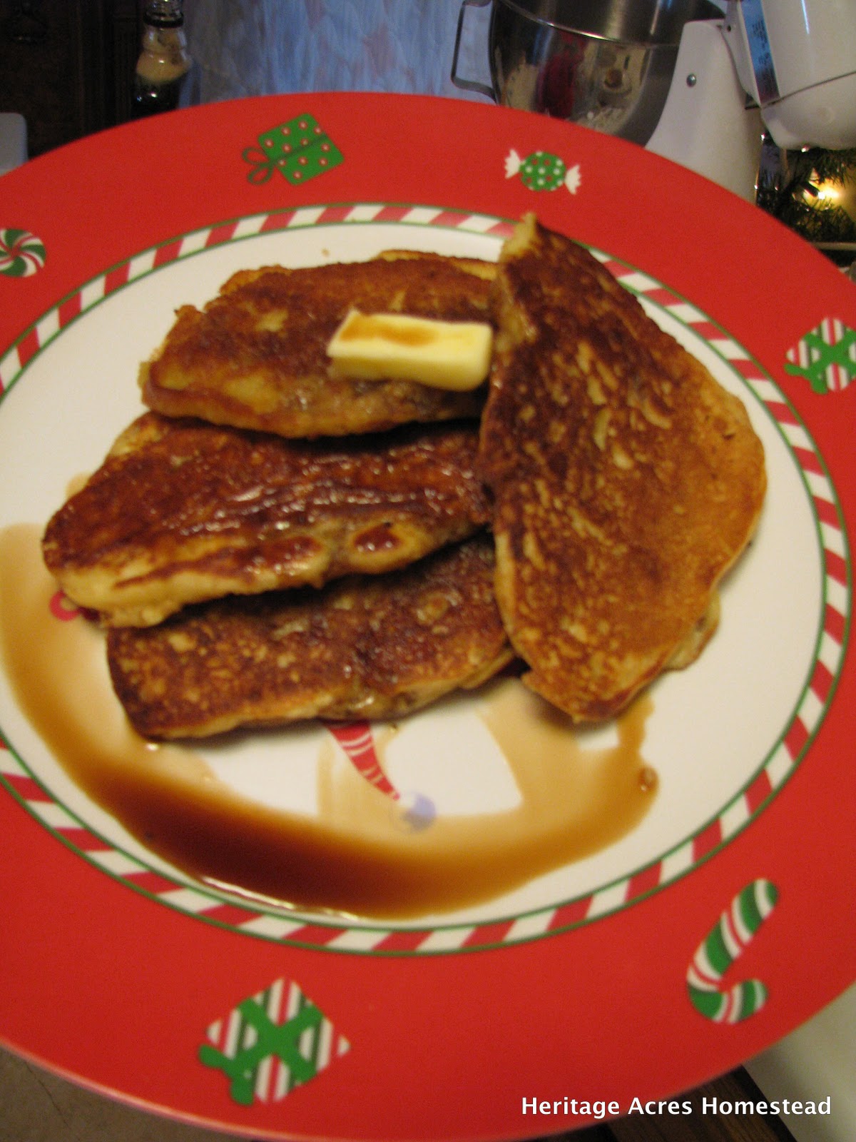 Once you have enough pancakes ready, your syrup ready, slap on a pat of butter.. grab a cold glass of raw milk and FEAST!
