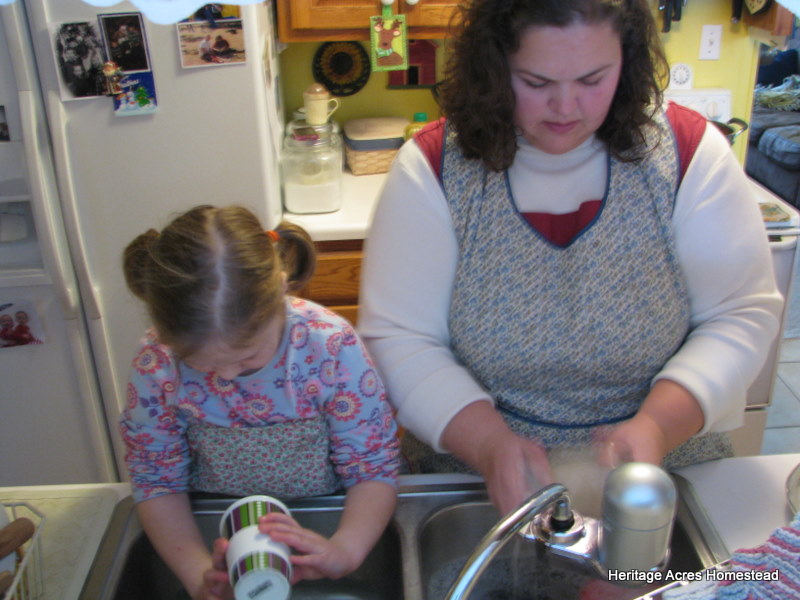 A while back, I decided not to fill up my dishwasher, but instead have the children help me wash up our dishes.