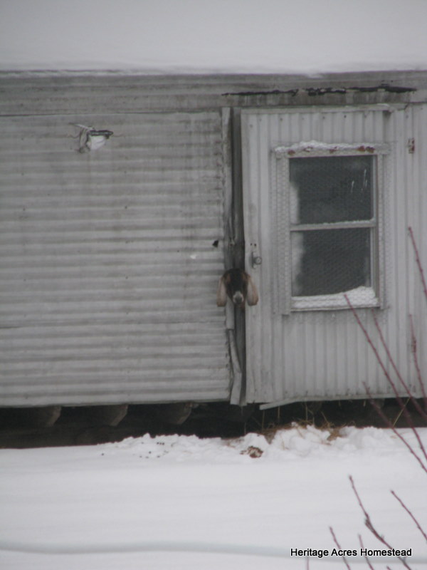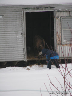 Abram went down to give her a little nudge, trying to make her realize it was ok to come outside.