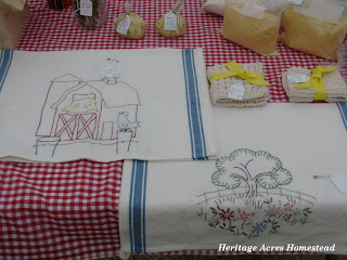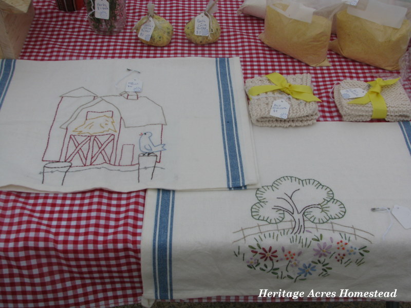 These two dish towels are new to our booth this year. I found them at a local variety store. I loved the vintage look to them and knew I wanted to make something lovely with them.