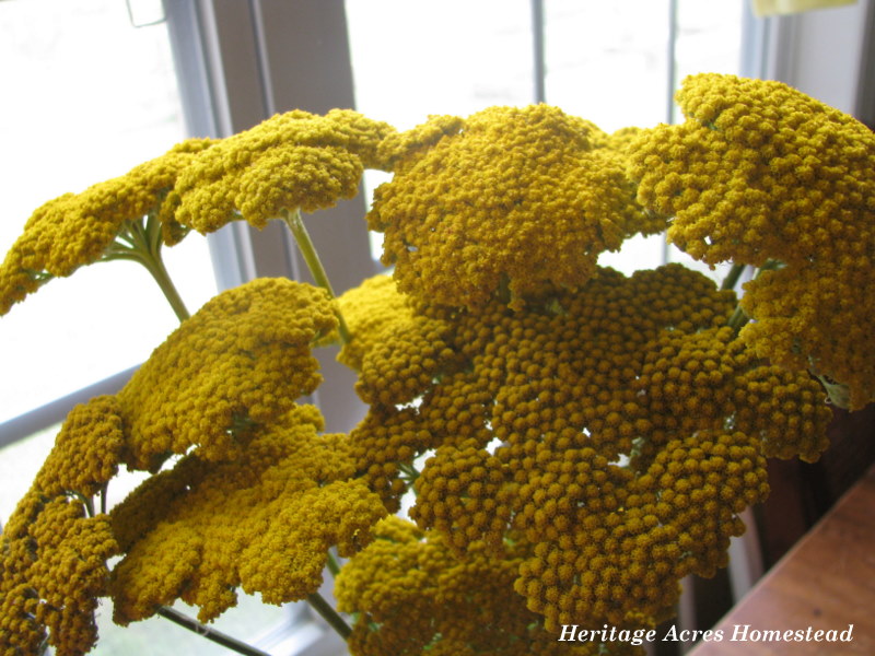 A couple of weeks ago, we were given a bouquet of Yarrow at the Farmer’s Market from some of our farmer friends. I *believed* that yarrow was a flower that was used for many different things, one being a natural dye.