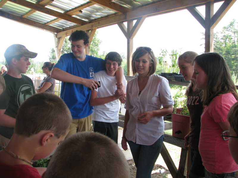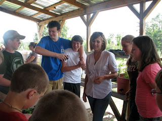 Taking a little rest beside the lake that waters their farm. Such a nice field trip…