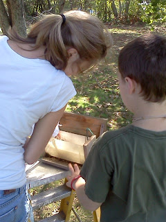 Last week, the children and I started working on a project for Biology. We have made a ‘birding’ station right outside our bay window in the school room.