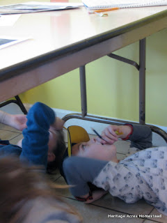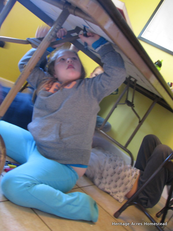 We lined the underneath of our school table with copy paper.