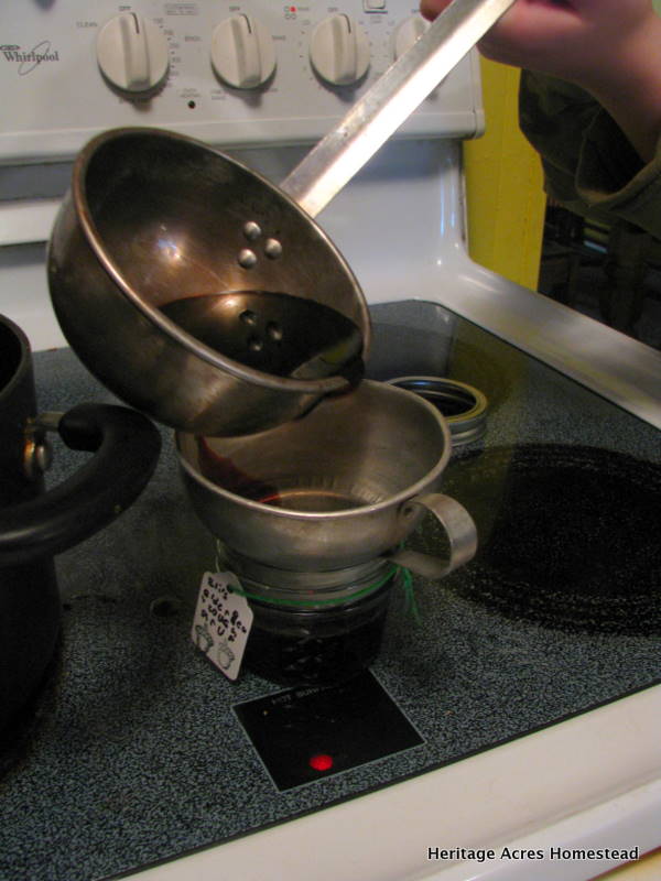 After an hour of cooking, we strained the berries and added 1 1/2 cup honey to the juice.