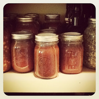 Yesterday I ‘put by’ the first of the spaghetti sauce for the year.