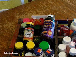 She arranged the sections that half would be our herbs and vitamins and the other half would be liquids like benedryl, children’s tylenol and such.