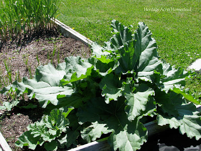 Say hello to my little… er HUGE friend! Rhubarb! Isn’t it amazingly beautiful?!?! I had absolutely no idea just how big she would grow! I have two small ones beside her that I am going to have to move, because she is almost taking up one whole side of the bed. My green onions are being shaded as is! I’ll know better when I plant again next year. I’ve got to give this plant some ROOM!