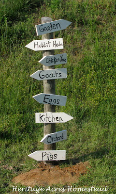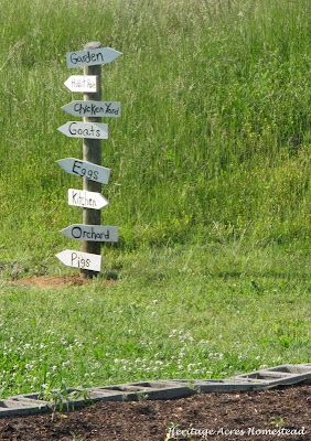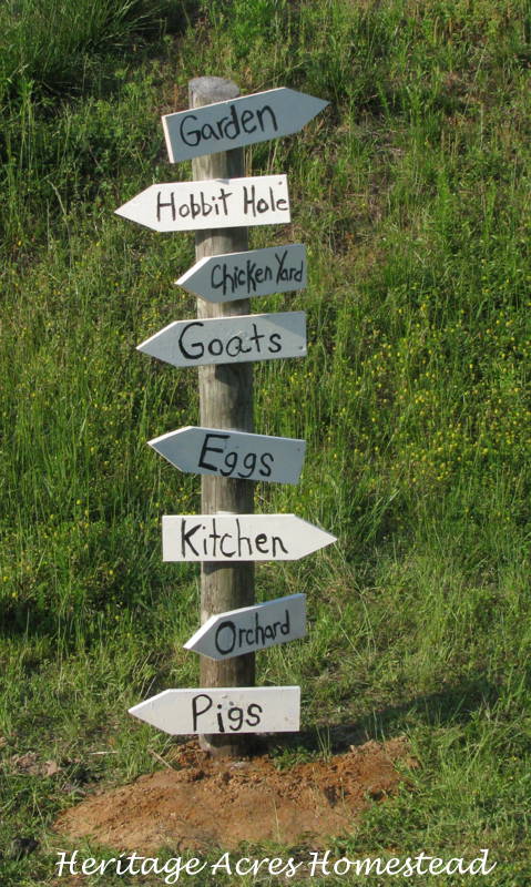 This project is easy to make. It’s just a post, some scrap pieces of wood. Angle off the end to make a point. Slap some paint on there and write your favorite places around the homestead. Easy Peasy!