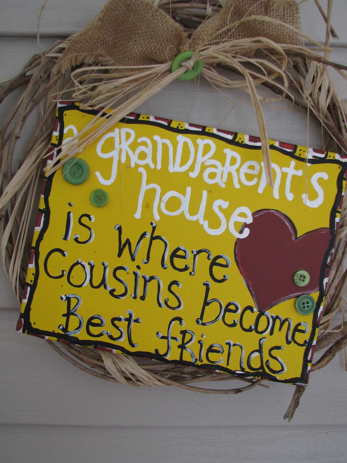 My Sister-n-law made this sign for the back porch at her house. I think it is perfectly fitting because cousins do become best friends at their grandparent’s house. I remember as a child and even older, that my Nannie’s house was my favorite place to go, because I knew my cousins would be there and we have a lot of cousins. We were all so close it was more like extended brothers and sisters. I want that for my family… and I think it already is a lot like that.