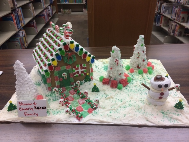 My children and I entered a gingerbread house contest at our local library. We entered the family division and WON! We were so excited!
