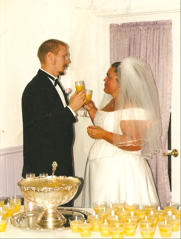 Banana punch is such a special occasion drink. It was so special that it was served at my wedding. Yep, that’s us above… many years ago.