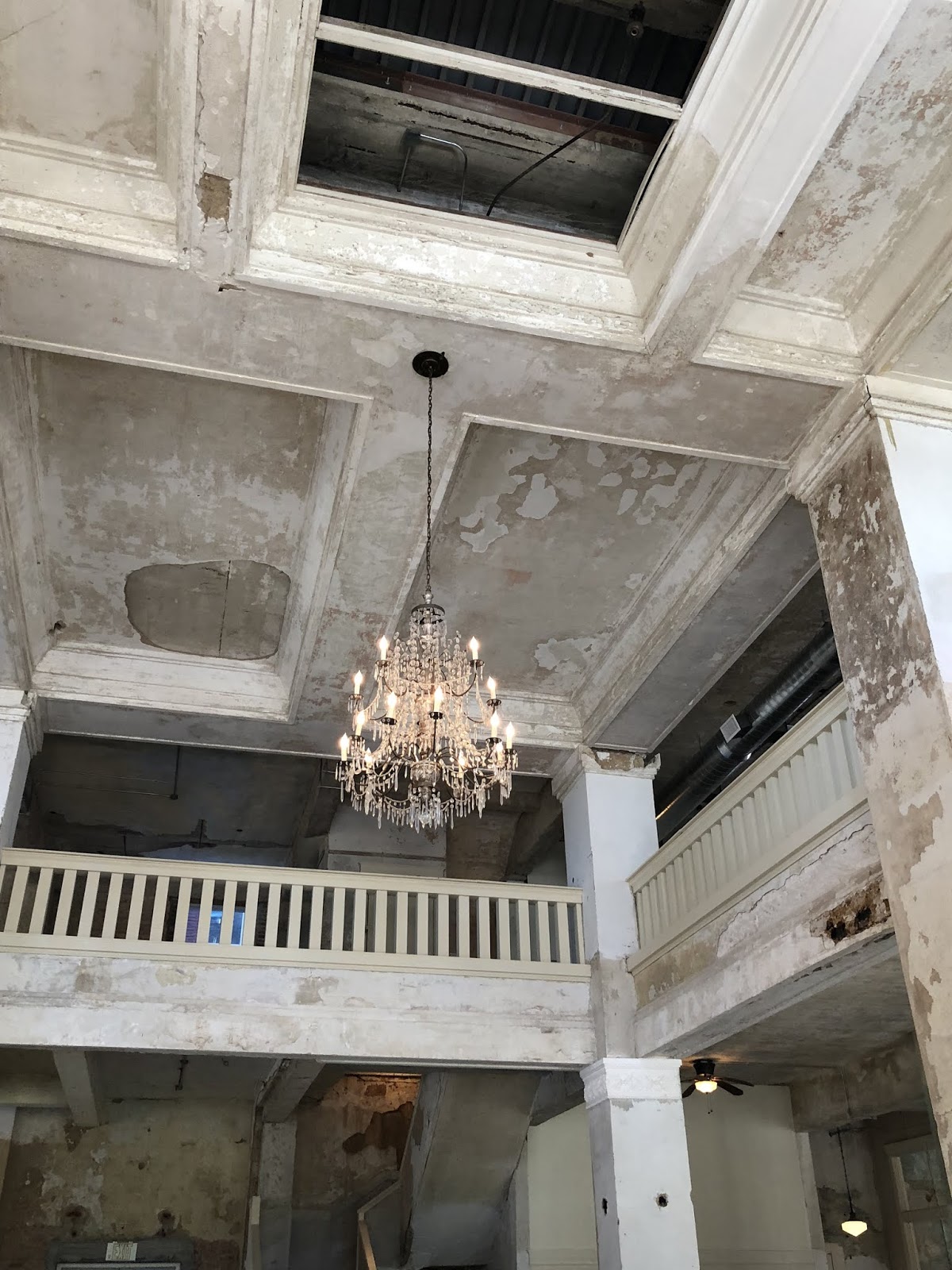 A historic old building in the center of town, near a nice park and some distinguished old buildings.