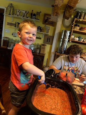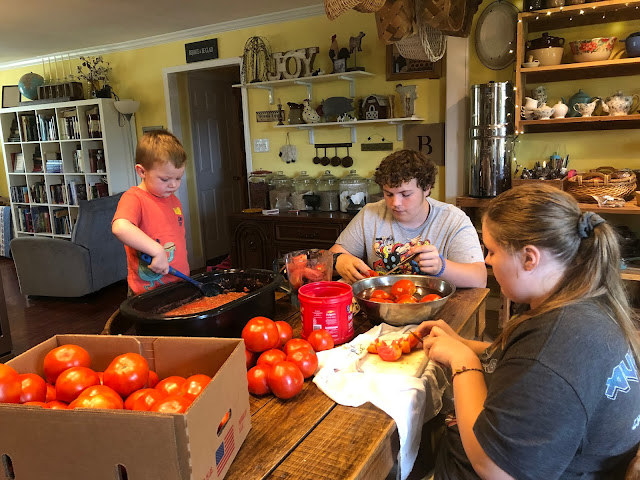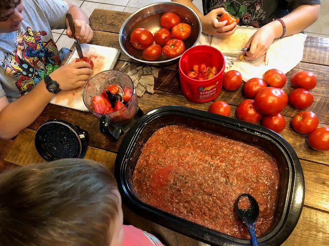 I had extra sets of hands to help as we worked with so many tomatoes!
