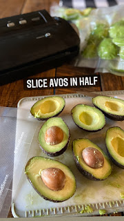 I then place them in the vacuum seal bag. One side is sealed and one side left open for adding the avocados.